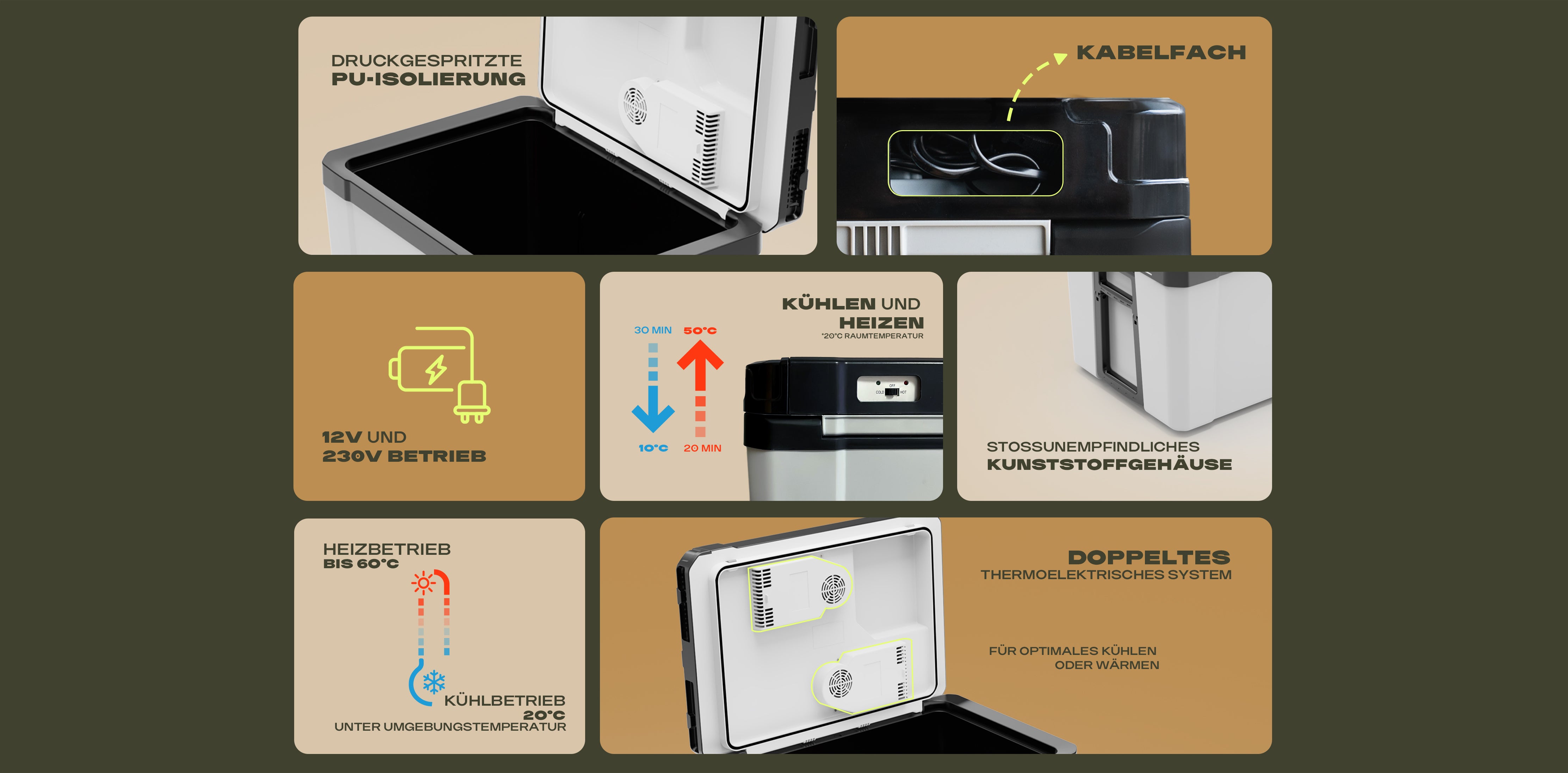 ​Der ThermoCube überzeugt auch beim Heizen: Mit einer maximalen Temperatur von 50°C -60°C hält er Speisen und Getränke zuverlässig warm. Egal ob für einen langen Roadtrip oder die Grillparty im Garten, die Peltier-Technologie sorgt für eine konstante Wärme - wann immer du sie brauchst.