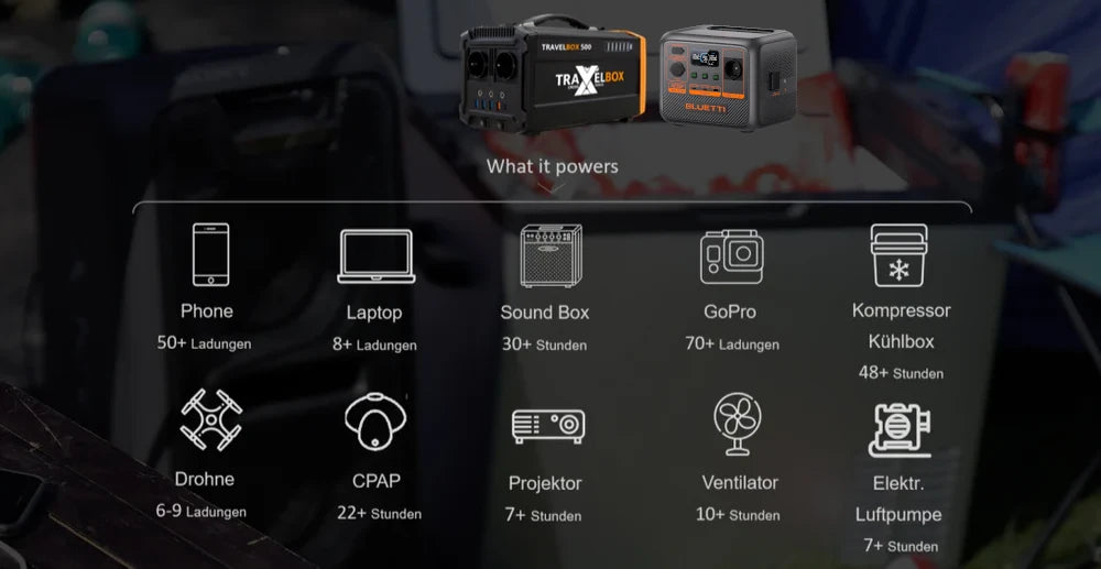 Du nimmst die Powerstation mit zu deinem Platz und nutzt den Strom.